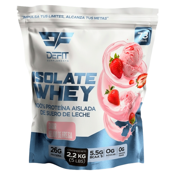 Construye fuerza, supera tus límites y acelera tu recuperación desde la primera toma. Isolate Whey entrega 26 gramos de proteína aislada y 5.5 gramos de BCAA por porción. Su fórmula 100% pura potencia la síntesis de masa magra, mejora la recuperación muscular y estabiliza el metabolismo energético. Con absorción rápida y respaldo científico, impulsa tu rendimiento físico en cualquier nivel de entrenamiento. Diseñado para acompañarte, tanto si comienzas como si desafías tus propios récords. DeFit transforma nutrición en resultados reales.